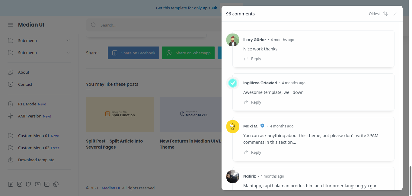 Tentu, ketika Anda membeli template ini secara resmi dari pengembang, Anda hanya perlu membayar satu kali saat pembelian pertama dan Anda akan mendapatkan akses pembaruan template sepanjang masa. Namun, jika Anda mengunduhnya secara gratis, Anda tidak akan menerima pembaruan apa pun dari penyedia atau penerbit.