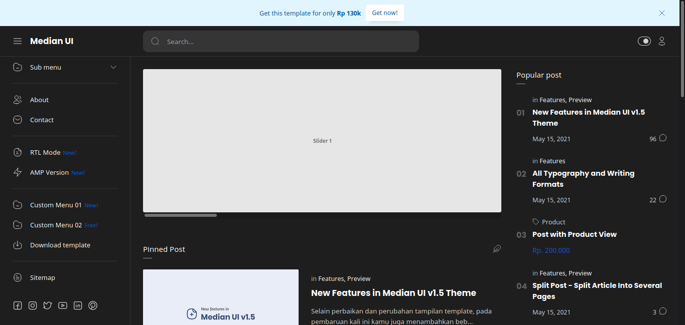 Jika Anda merasa tertarik untuk mengunduh template Plus UI Premium untuk platform Blogger atau ingin melihat demo template, berikut link yang bisa Anda tuju.