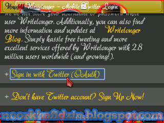 - Masuk ke Writelonger, Knapa harus ke Writelonger ? Tidak ke Twitter ? Karena kalau ke Twitter tidah ada fitur ungah foto jika menggunakan HP. Setelah masuk ke Writelonger pilih Sign in with Twitter (OAuth)