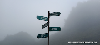 Pukul 07.00 kami tiba di persimpangan, menuju puncak Rajawali, puncak Sejati dan menuju Kawah. Kami memutuskan pergi ke Puncak Rajawali.
