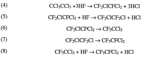 Metodenya mengkoversi PCE ke HFC-123 atau HFC-134a yang menghasilkan pembentukan HCFC-124 sebagai produk sampingan. Katalis yang digunakan adalah krom oksifluorida.