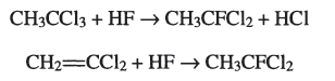 Penambahan HF ke vinilidena klorida menghasilkan HCFC-141b tanpa produk sampingan HCl.1,1-Difluoroetana, CHF2CH3 (HFC-152a)