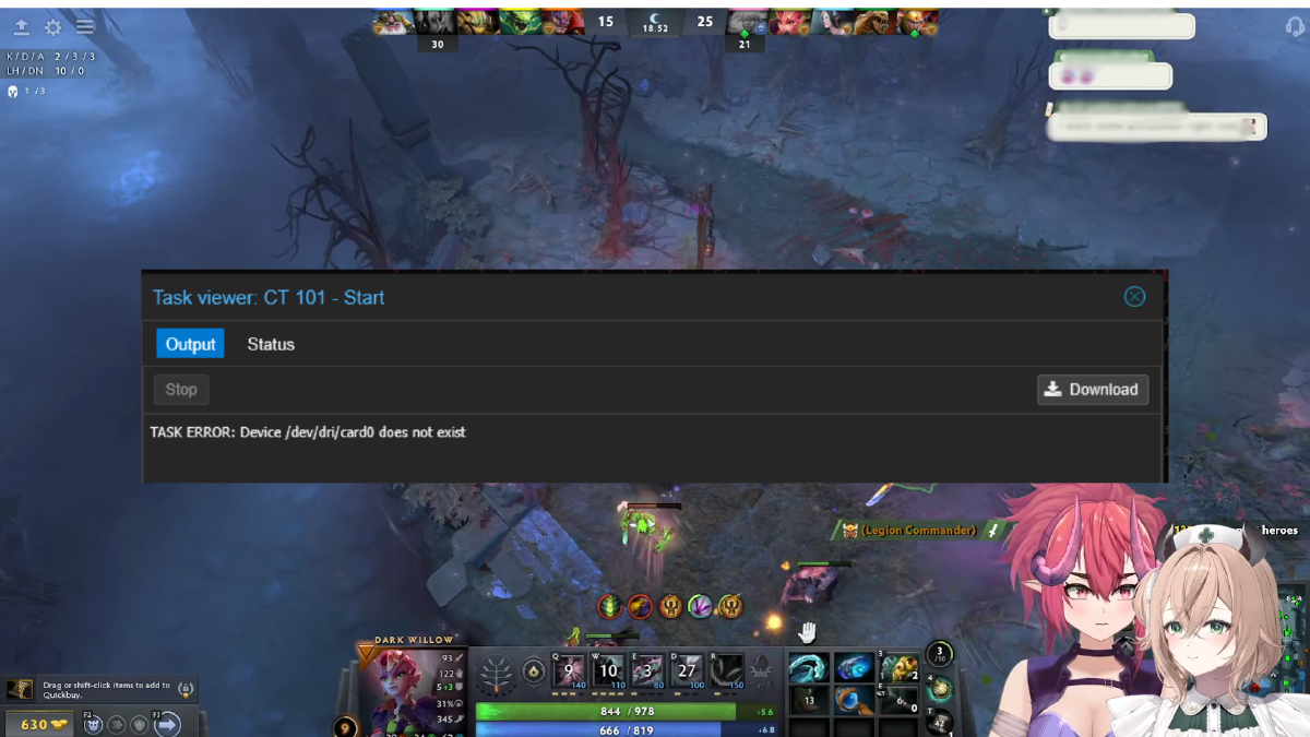 Since the LXC configuration is hardcoded to use card0, every time the real GPU lands on card1, the container fails to find the device and throws the error.